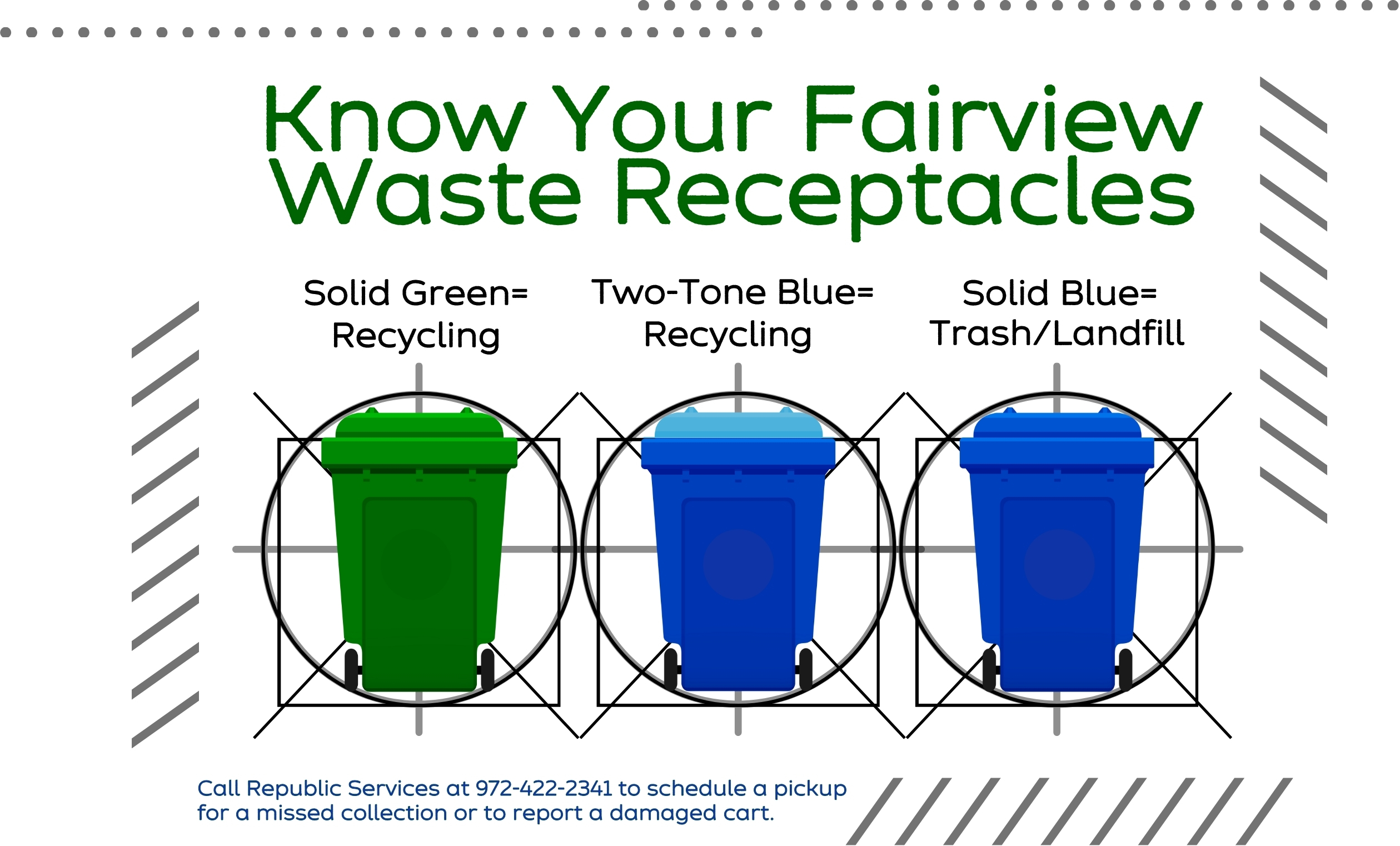 Household waste and recycling is collected by Republic Services. Call 972-422-2341 to report an issue with collection.